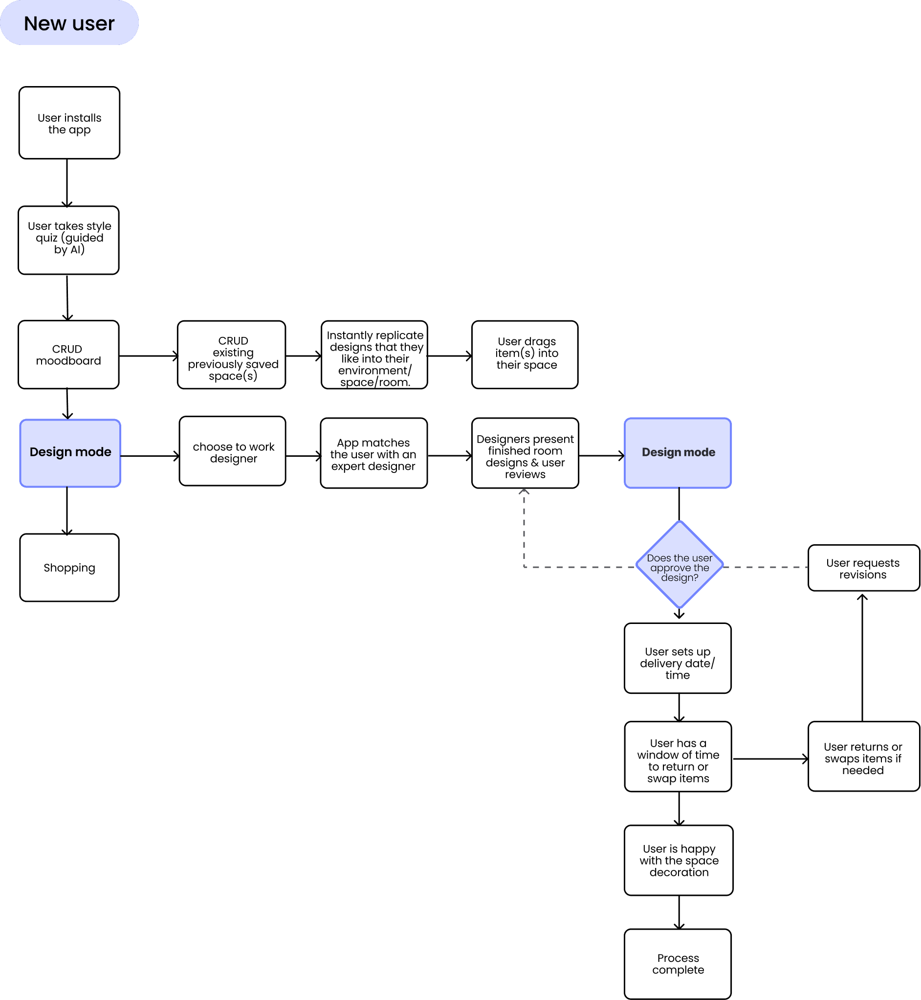 Visualize user intent at each stage to help prioritize key touchpoints like the AI quiz, moodboard creation, and AR placement.